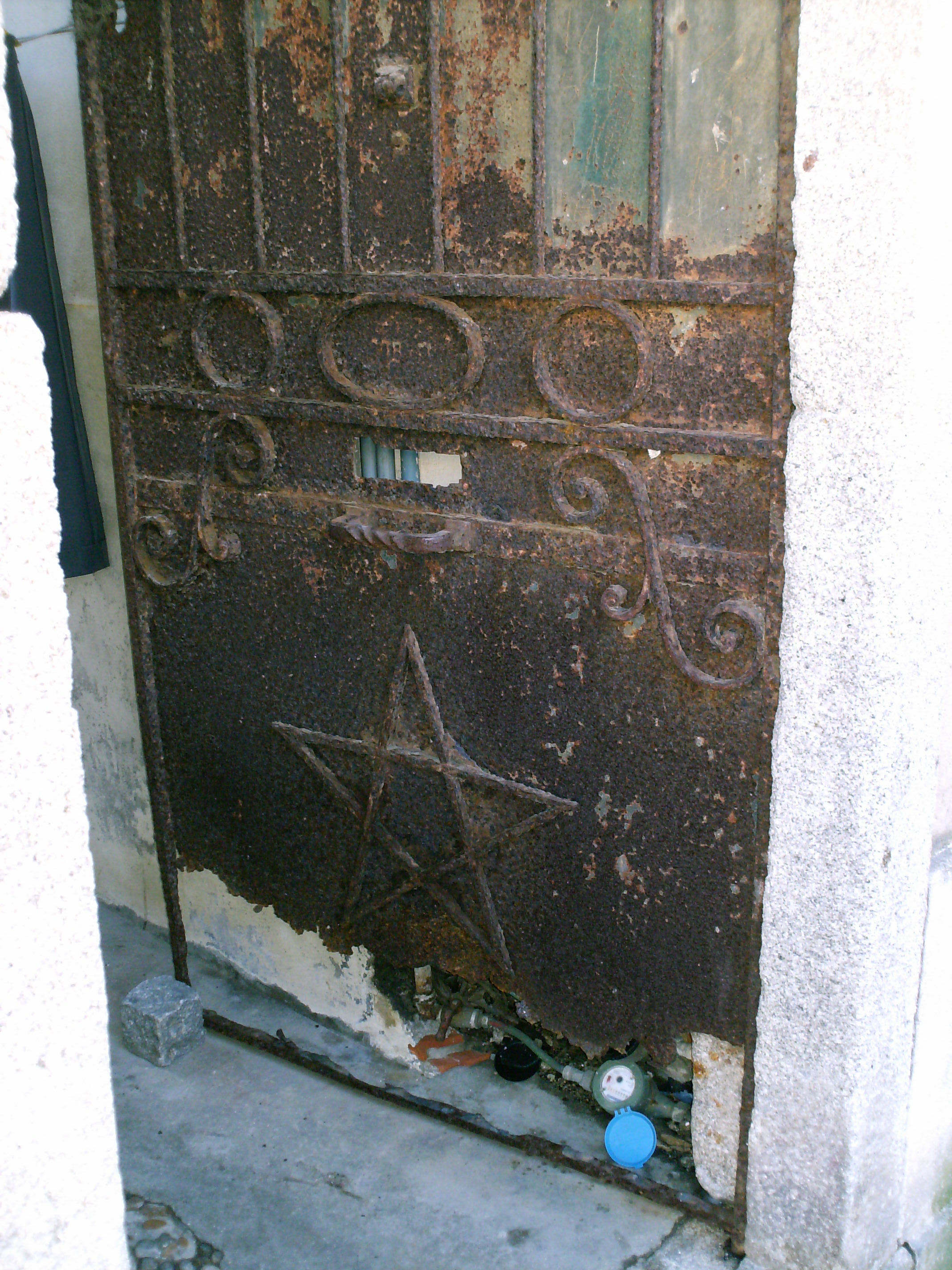 Pelo portão deve ter pelo menos uns 40 a 50 anos. A região do porto está toda assim por causa de um “trabalho” de muitos anos que agora pensamos resolver em dois ou três, a custo zero e por motivos políticos de ocasião. Nós somos assim. Isto é o que vemos, porque debaixo das ruas há o saneamento, as águas e as galeria técnicas invisíveis, os cabos de telefone/tv aéreos que povoam toda a região e todo um rol de indicadores de subdesenvolvimento primário acentuado típico da mais primitiva américa do sul, convivendo com os planos pólis e com o que há de tecnologicamente mais avançado, pago com dinheiro dos outros. O que interessa é o TGV. Como dizem os nossos políticos, nós somos tão bons ou melhores que os outros.