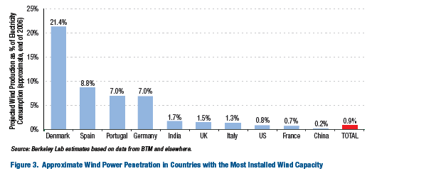 Isso pouco nos diz se se está a investir muito ou pouco nas eólicas. P.ex., um pais que produza 2% de energia eolóca pode estar a investir mais que um produza 10% (o primeiro pais poderia estar a produzir só 0,5% há uns anos atrás e o segundo podia estar a produzir 11%)