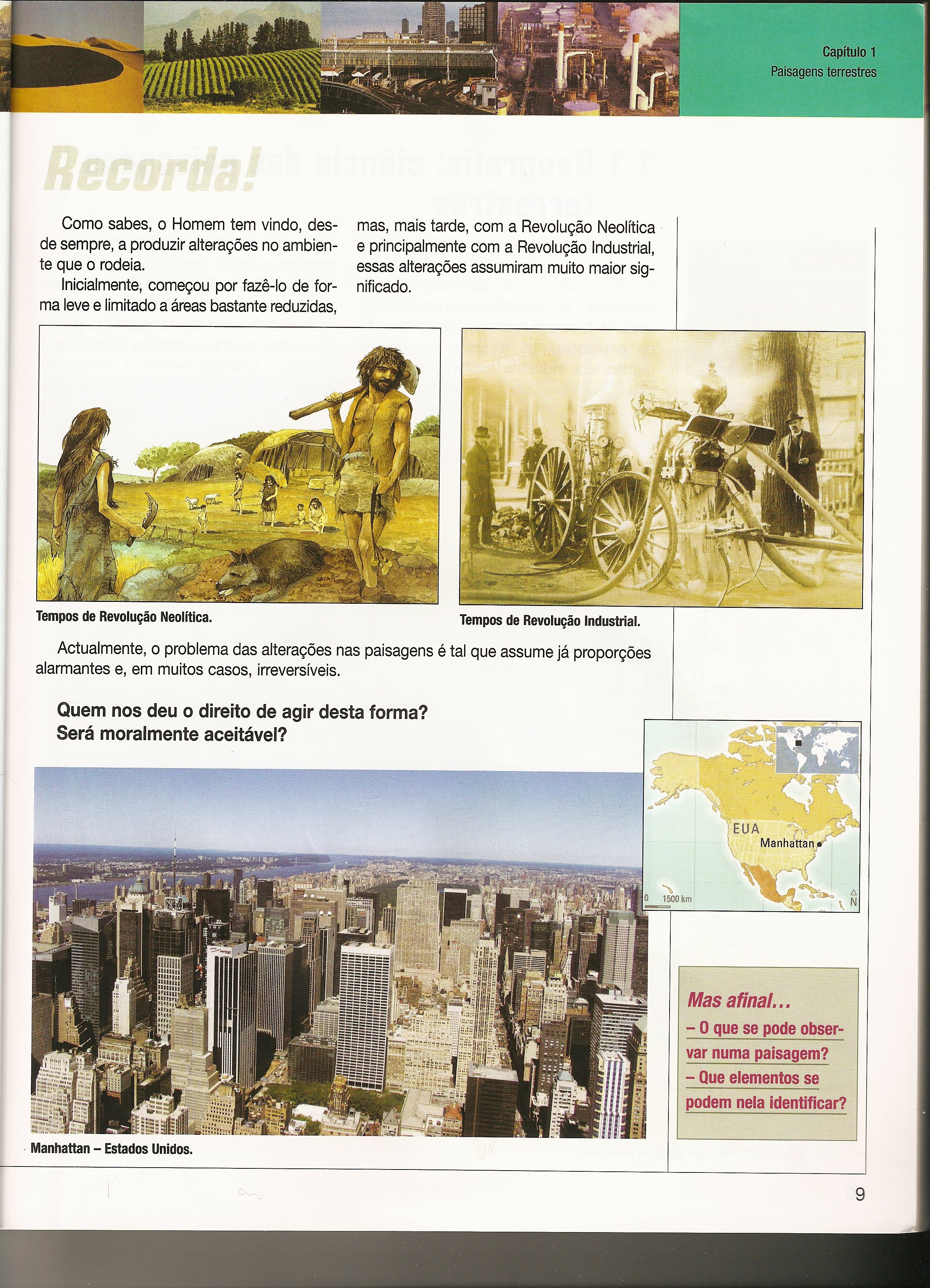 Diz que com a evolução do Homem, as paisagens foram-se modificando. Boa!