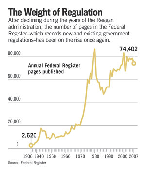 O Federal Register é onde são publicados todos os regulamentos do Estado Federal americano. Publicam-se por ano cerca de 74 mil páginas de regulação. Muita desta regulação transita para os anos seguintes. A tendência desde o fim dos anos 80 é o do aumento constante da regulação que é aprovada em cada ano.