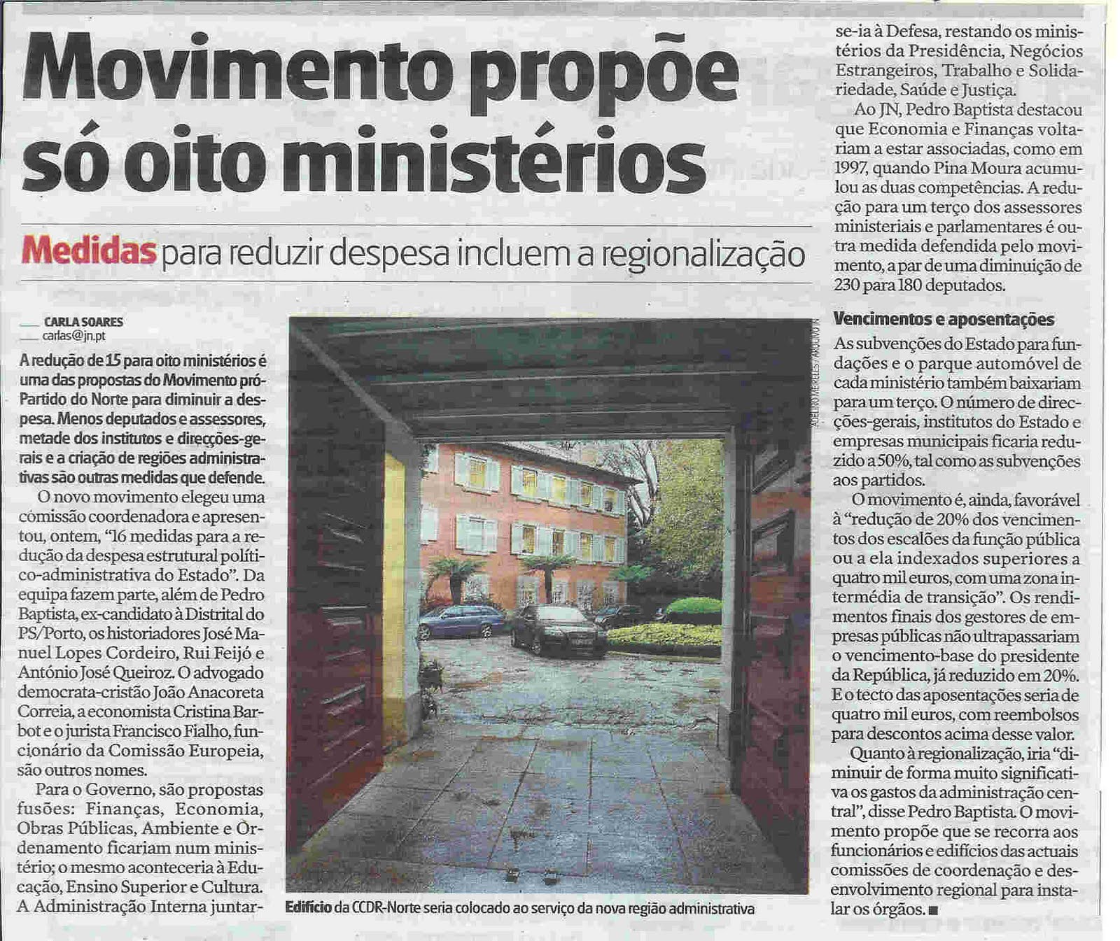 Sejamos sérios, e deixemo-nos de nortes politizados em torno do FCP, bem como de CCDR’s, a regionalizar há que regionalizar de vez, no mapa das 10 ou 11 regiões respeitando a identidade cultural e social de todos os portugueses, para criar novos centralismos então que fique tudo como está, que para mim serve.