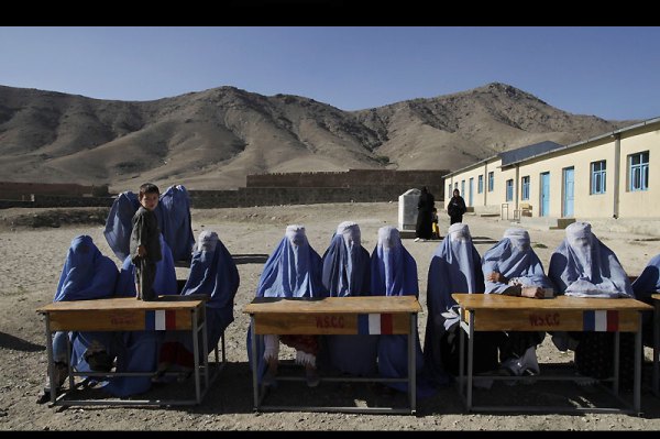 Segundo o Figaro esta fotografia foi obtida durante as recentes eleições no Afeganistão. As assembleias de votos reservadas às mulheres são as mais ameaçadas pelo talibans.
