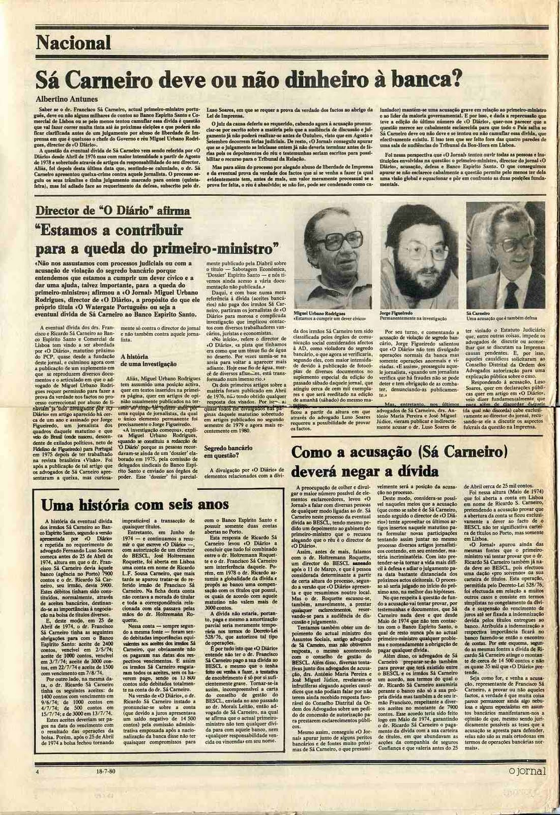 Havia muito a dizer, mas fico apenas por esta página de O Jornal sobre a “dívida de Sá Carneiro à banca”. Um exemplo de bom jornalismo como já não há