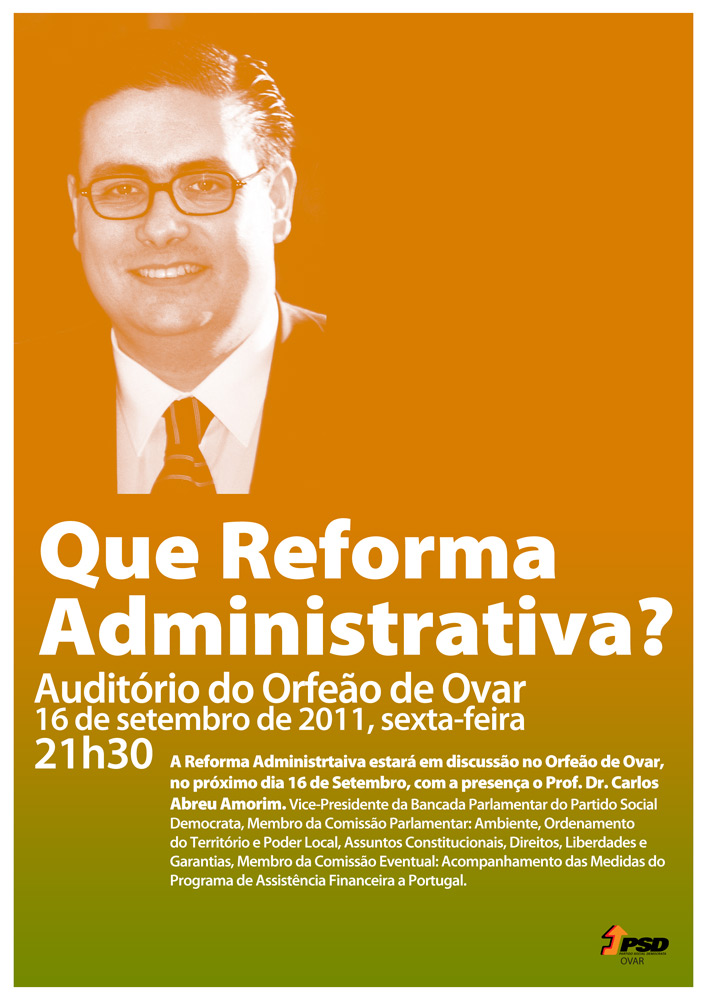 Hoje, às 21.30h, estarei em Ovar (Auditório do Orfeão) para falar da Reforma da Administração Local.