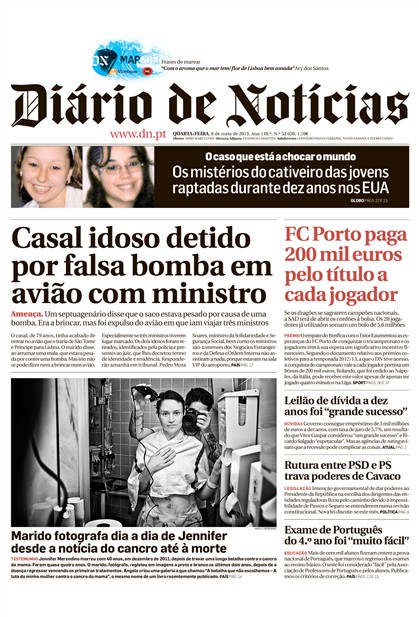 Quase um mês depois, a 8 de Maio, a mesma sequência fotográfica faz capa no DN: