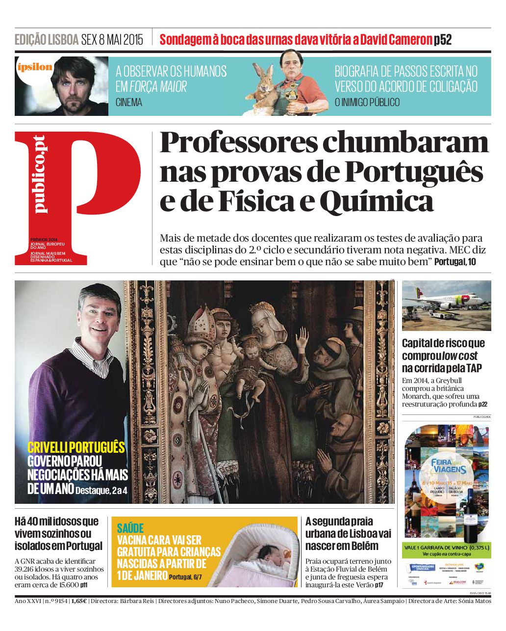 Sugestão de primeira-página para o “Público de amanhã”: Partido Trabalhista já procura o vencedor das próximas eleições britânicas”. O Ed Miliband está a anunciar a sua demissão.