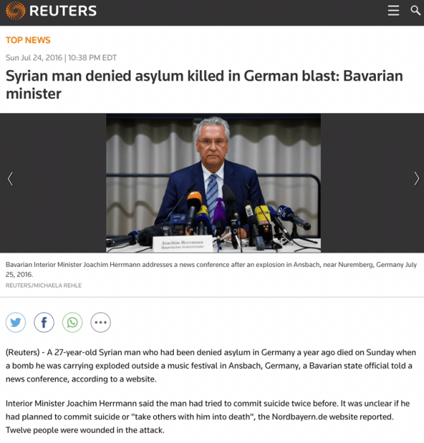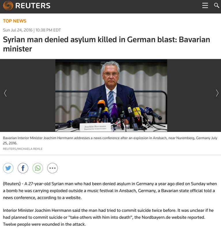 No site da Renascença lê-se que o bombista era um refugiado com problemas psiquiátricos. Ficamos a saber que há bombistas saudáveis psicologicamente e há os desequilibrados como é o caso. E ainda há terroristas, mas esses não interessam.