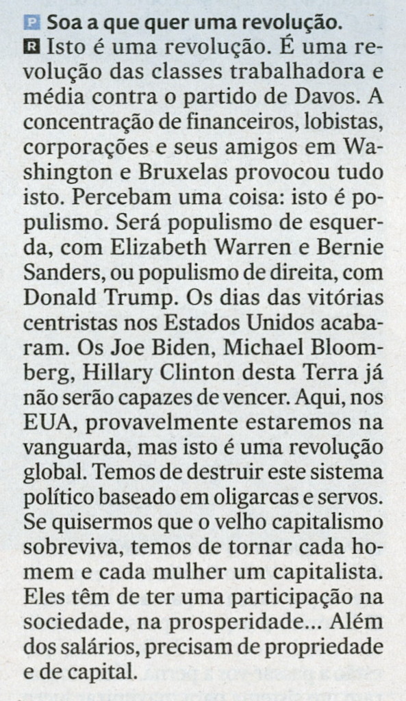 “mas não convém misturar Capitalismo Popular com Plutocracia Capitalista”. J. Ramos