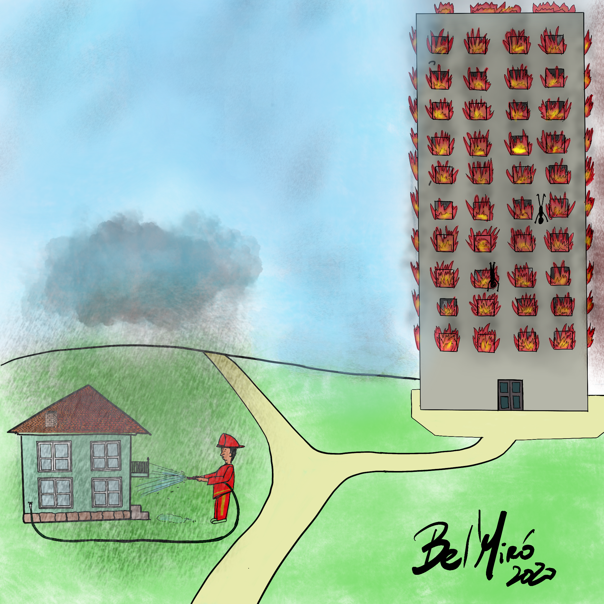 É tramada pelo contágio, pela arbitrariedade do modo como ataca a saúde das pessoas, das mazelas que deixa e de outra mil vezes mais importante- não é como os acidentes de estrada- esses devem-se essencialmente a cavalgaduras do asfalto- que são idênticas aos negacionistas egoístas.