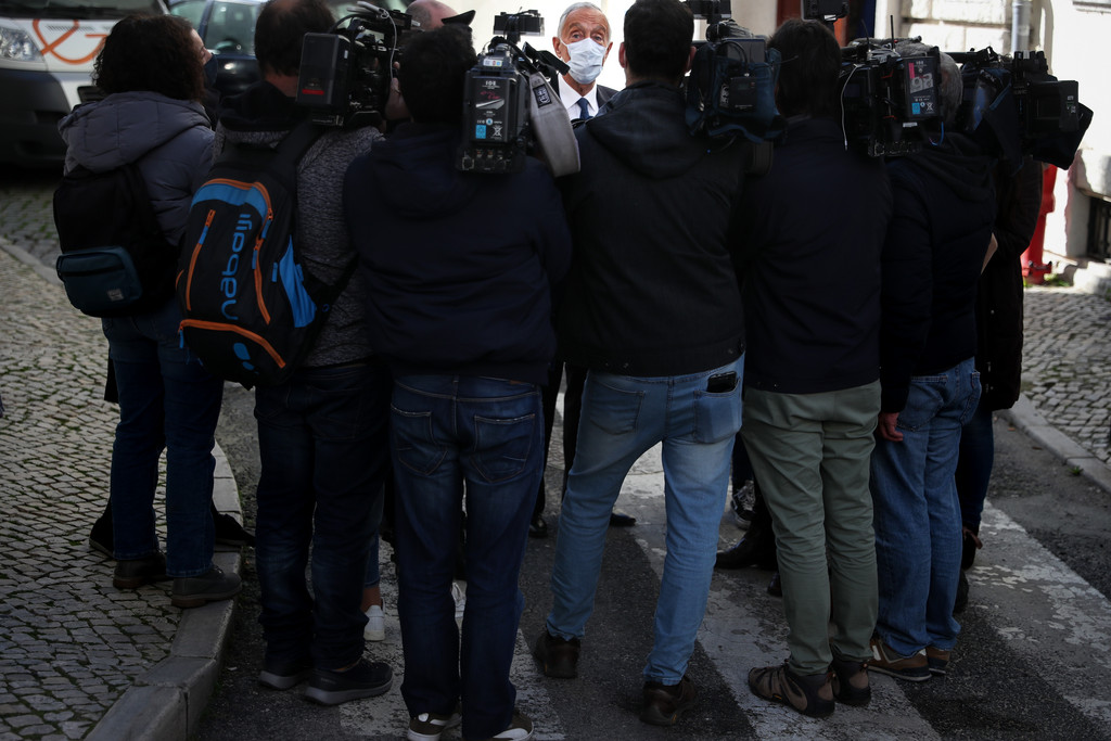 O Presidente-candidato rodeado de jornalistas à porta de um hospital explica que a culpa pela propagação do Covid é dos portugueses que não estão a cumprir as regras do ficar em casa. Nenhum dos presentes achou nada de contraditório nesta imagem.