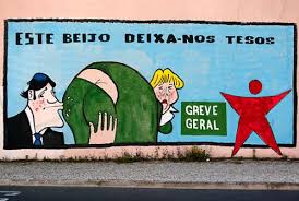 Se olhar com atenção o sujeito activo do mural parece-se com o Passos Coelho. Bons tempos em que o BE fazia oposição activa ao Governo que remendava como podia os farrapos herdados do Socras. Agora o BE, aninhado no seio quentinho do Komissario Kosta, enfiou os pincéis de pintar murais num sítio que eu cá sei.