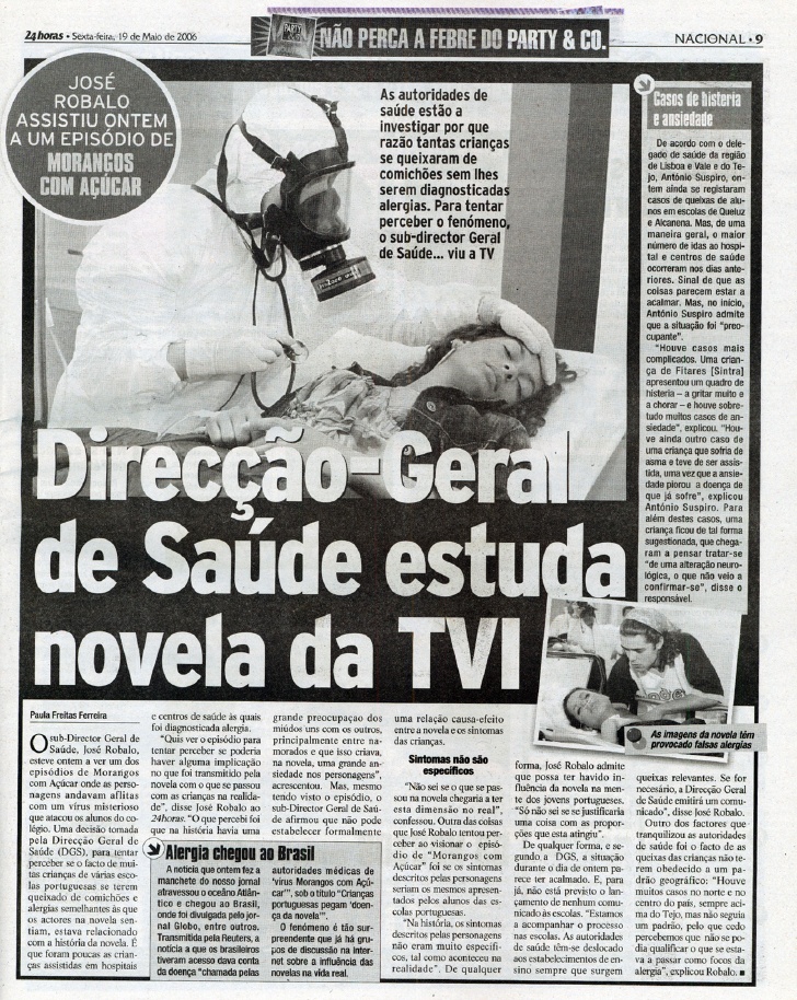 Dispensam-se os qualificativos de “negacionismo” e “irresponsabilidade” assim como toda a bazófia e ladaínha ridícula dos membros da seita covidista. Apenas se recorda aqui, a seguir, um fenómeno de histeria colectiva que ocorreu em Maio de 2006 no nosso país exponenciado pela popularidade, à época, da série televisiva “Morangos com Açúcar”.