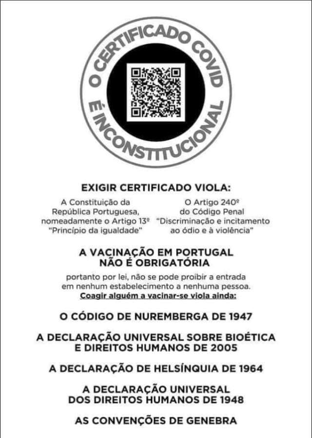 Mas então, como chegamos ao certificado digital? Simples: lavagem cerebral da OMS com a alteração do critério para declaração de pandemia; dos media através da propaganda do medo, ocultação de contraditório, dos números de mortes após inoculação, dos relatórios da VAERS dos efeitos adversos das vacinas, da falta de investigação jornalística (porque não podem contrariar quem os subsidia); da manipulação de critérios de classificação de mortes “por, com e de” covid pela DGS, reforçado por uma Task Force com ordens explícitas para usar o medo nesse sentido: