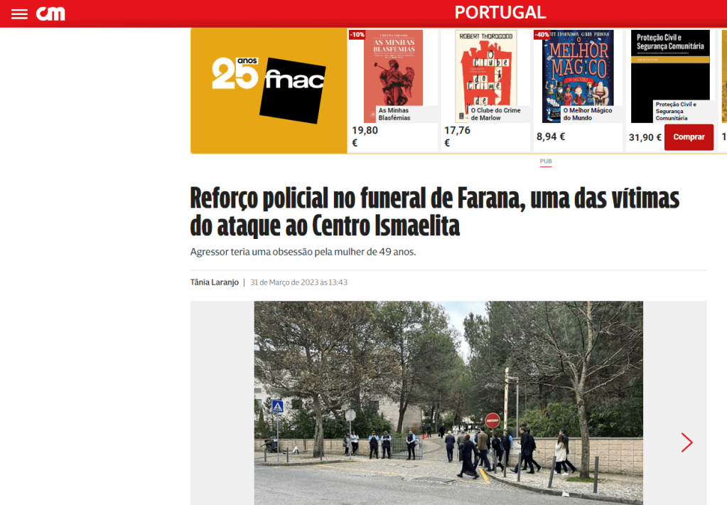 Uma jornalista do Expresso no podcast com o Sousa Tavares refere-se ao assassinato de 2 mulheres e ao ferimento grave de 1 homem como “sobressalto no centro Ismaelita”.