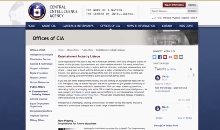 Do mesmo modo, a CIA esteve e está envolvida em Hollywood . Kevin Shipp – um ex-agente da CIA denunciou esta prática e até detalhou o processo (aqui).