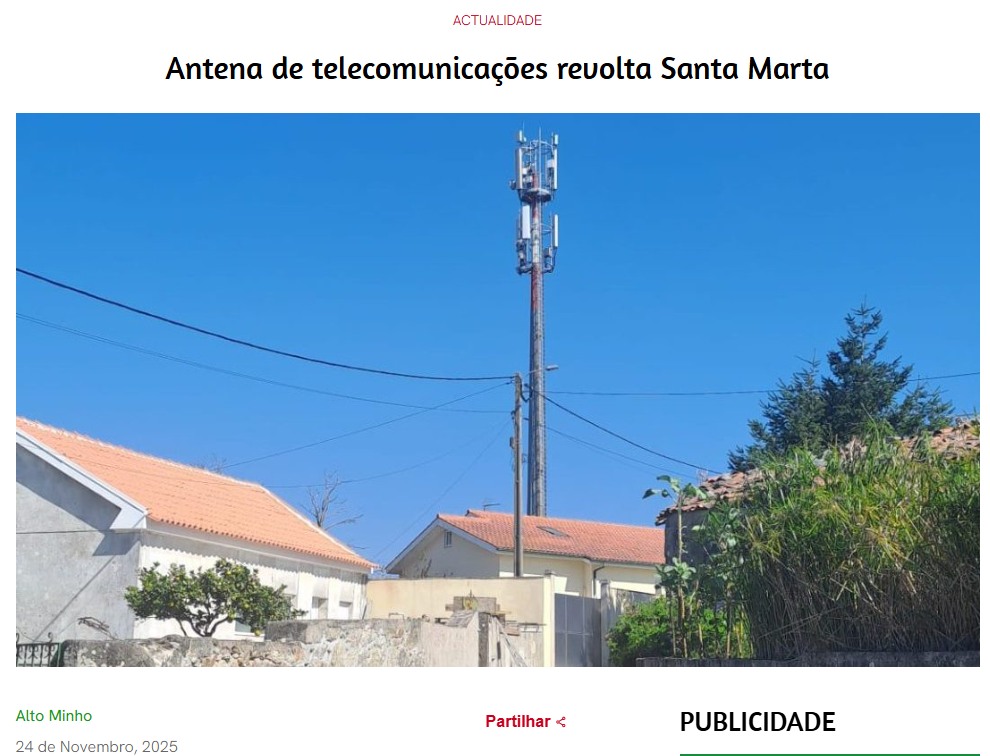 A instalação de uma antena de telecomunicações 5G na freguesia de Santa Marta de Portuzelo, em Viana do Castelo, tornou-se um caso exemplar de má gestão pública, opacidade política e desrespeito absoluto pela participação dos cidadãos. A torre da NOS, erguida na Rua Alto Xisto, foi colocada a poucos metros das habitações, enfiada no coração de uma zona residencial sensível, como se a vida das pessoas fosse um pormenor descartável no planeamento urbano.