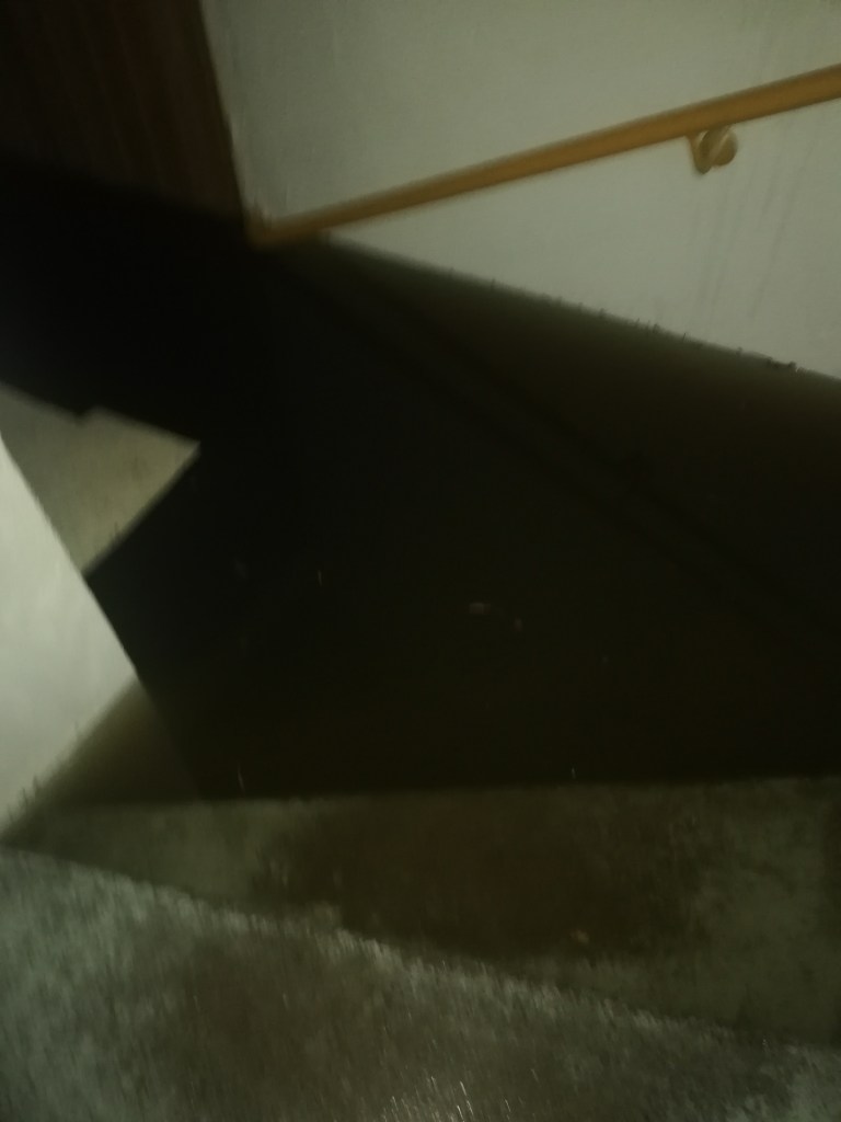 Menos de vinte minutos depois, o senhorio, na casa ao lado chamou-nos: a água começava a entrar na cave. A situação agravou-se rapidamente. Em pouco tempo, já estava a aproximava-se do primeiro piso. O receio tornou-se medo real. A chuva continuava sem tréguas, e a sensação de impotência crescia.