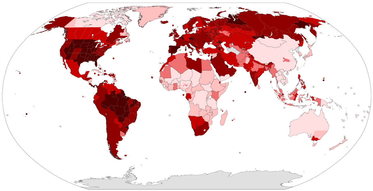Map of the COVID-19 verified number of infected per capita as of 10 November 2020.